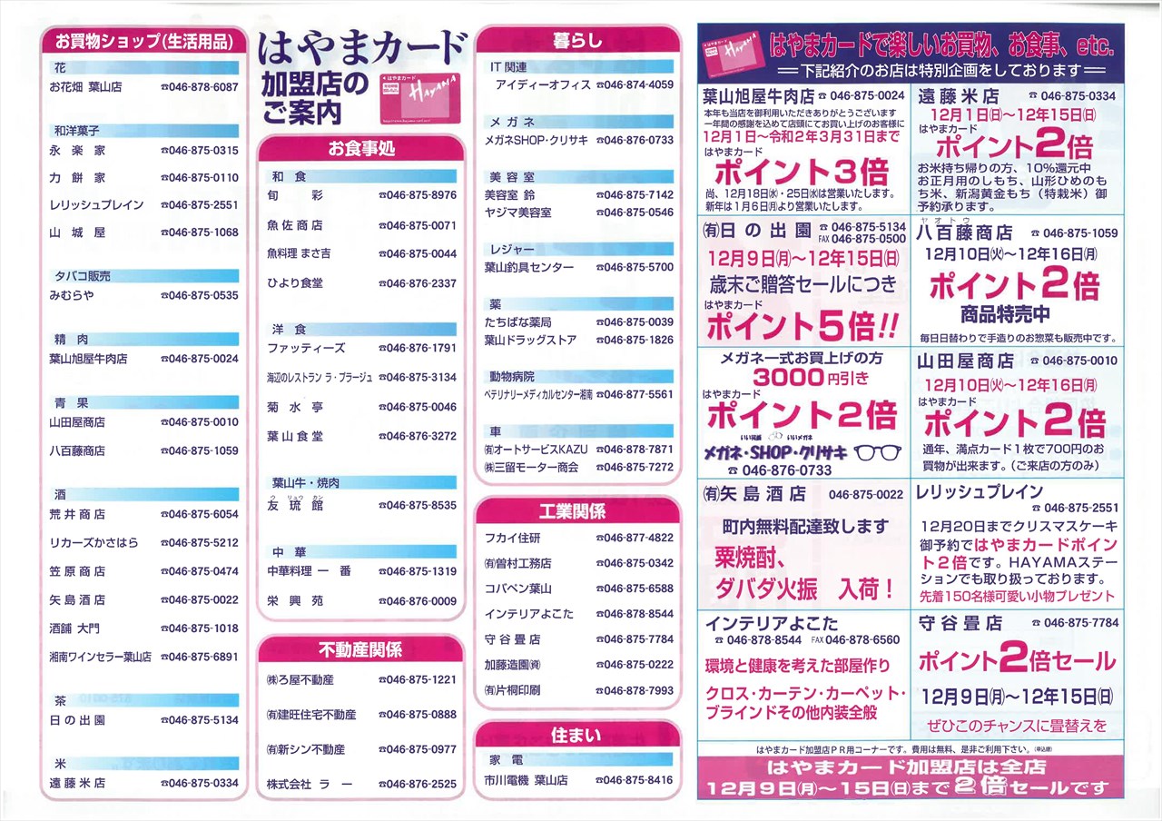 お買い物♪お食事は♬平成も「はやまカード」加盟店、令和になっても「はやまカード」加盟店