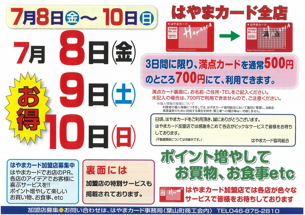 7月8日(金)9日(土)10日(日)は満点カードがお得に使えます!